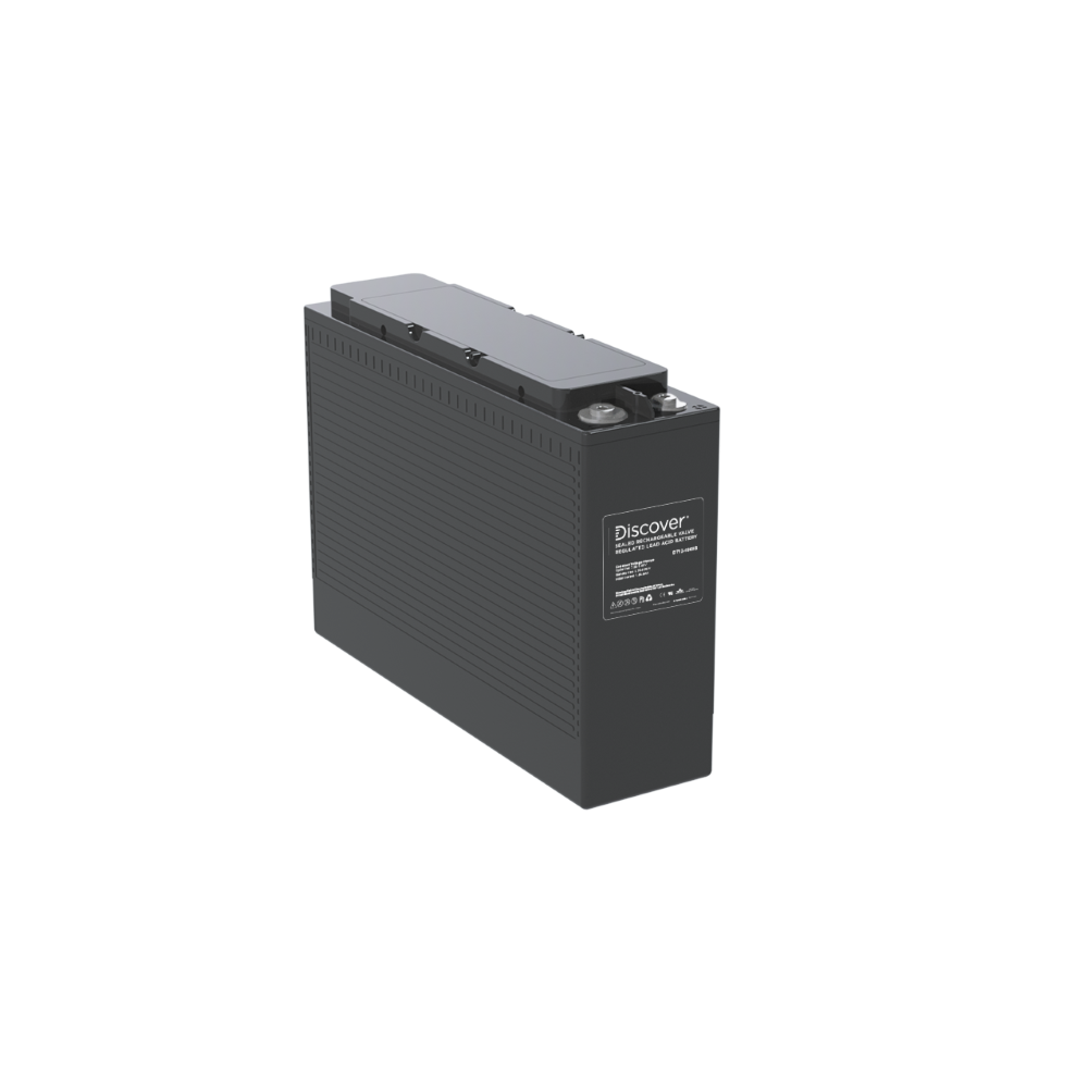 Discover® VRLA AGM Front Terminal batteries feature integrated carrying handles and front access terminal connections for easy install and service in 19-inch and 23-inch battery cabinets. The batteries are valve regulated, maintenance-free and ideal back up for industrial, utility and telecommunications applications.