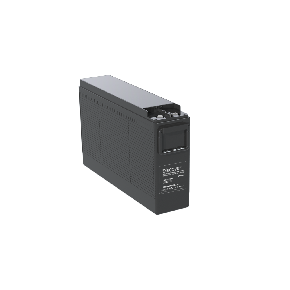 Discover® VRLA AGM Front Terminal batteries feature integrated carrying handles and front access terminal connections for easy install and service in 19-inch and 23-inch battery cabinets. The batteries are valve regulated, maintenance-free and ideal back up for industrial, utility and telecommunications applications.